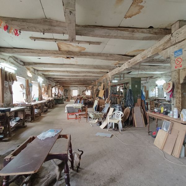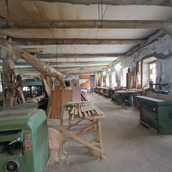 Venta de antigua fábrica de muebles en Hervás, en la zona del Mediano Alto. 3.150 metros cuadrados construídos y más de 7.000 metros cuadrados de terreno, destinados a regadío, arbolado y pastos.